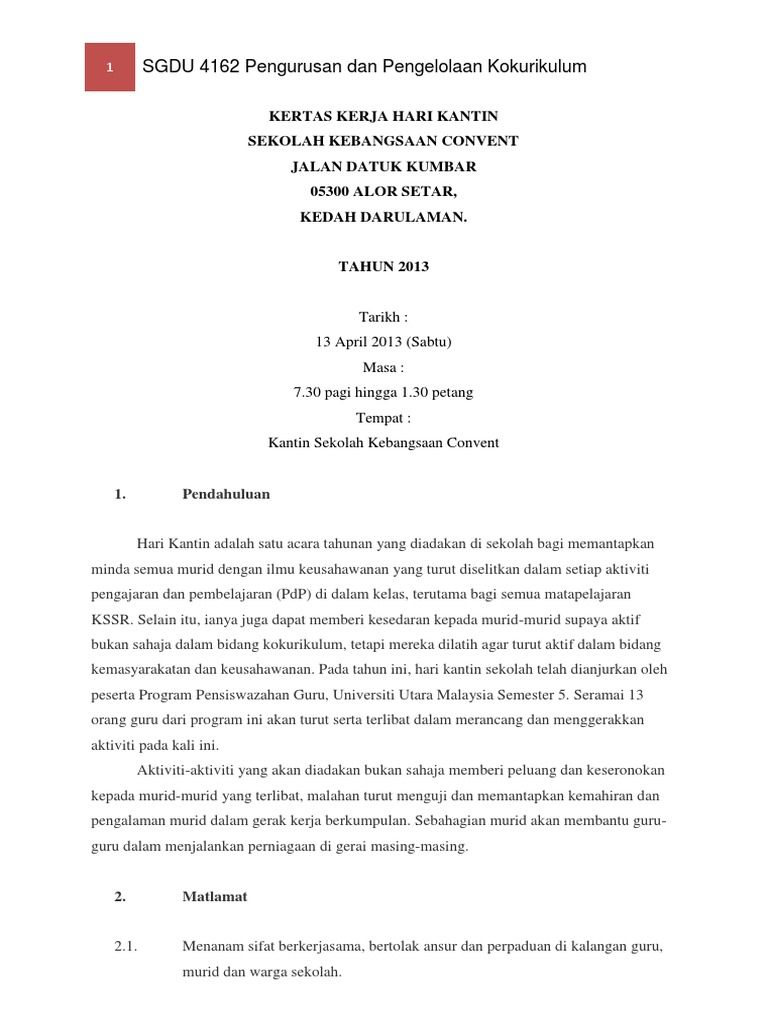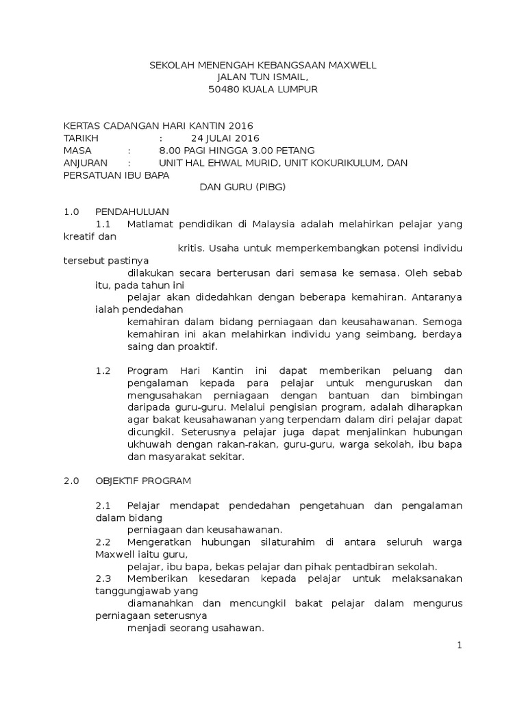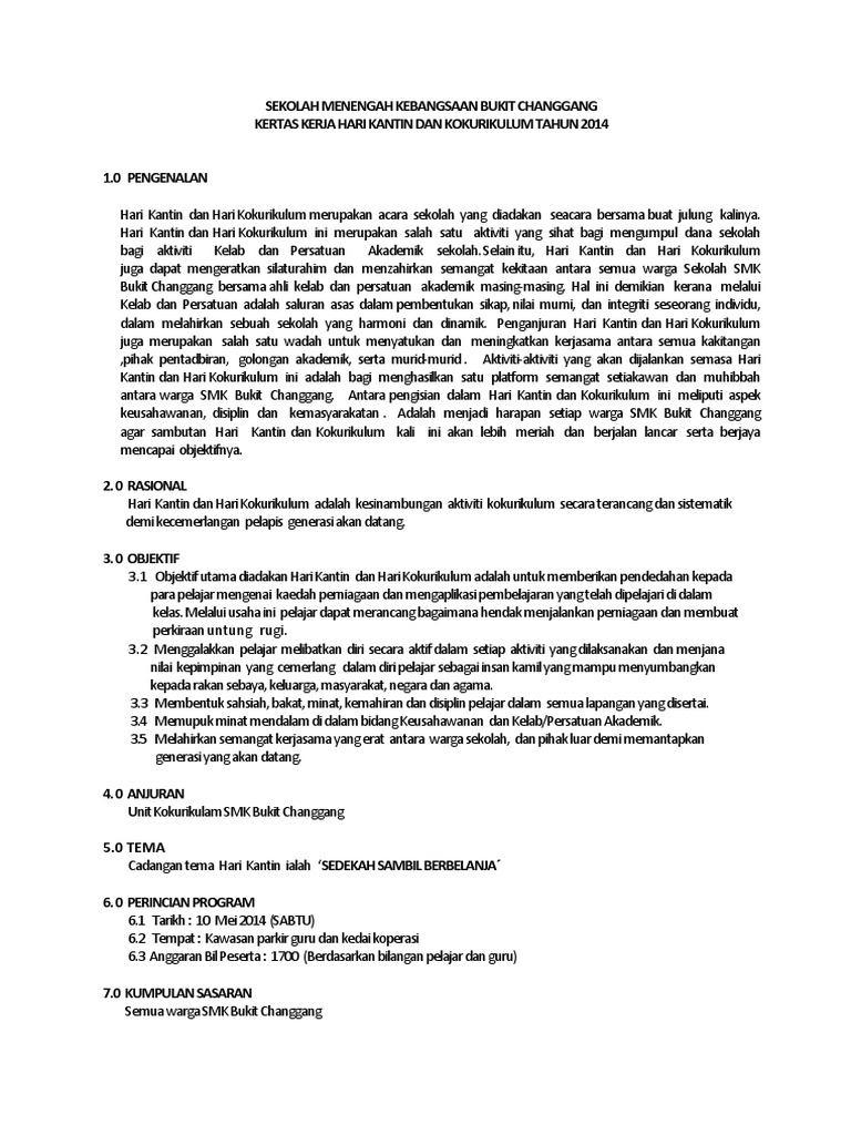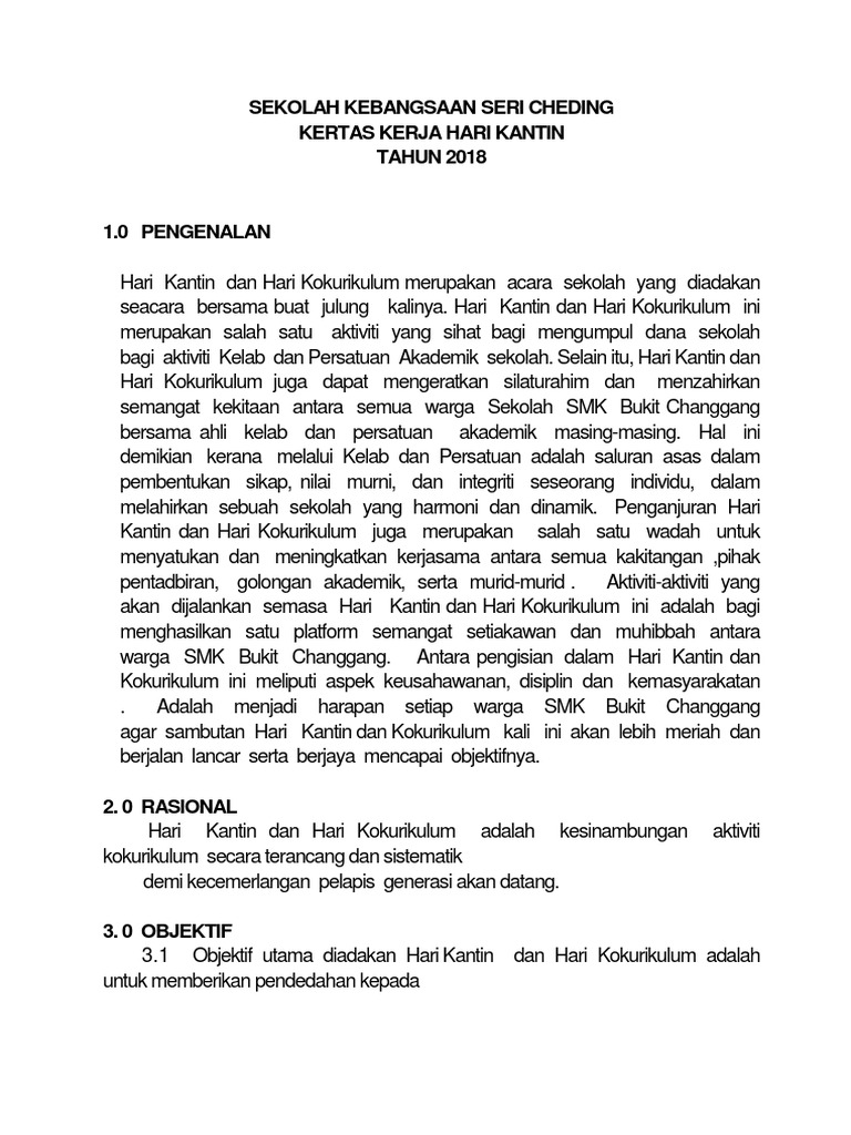 Kertas Cadangan Hari Kantin Pdf