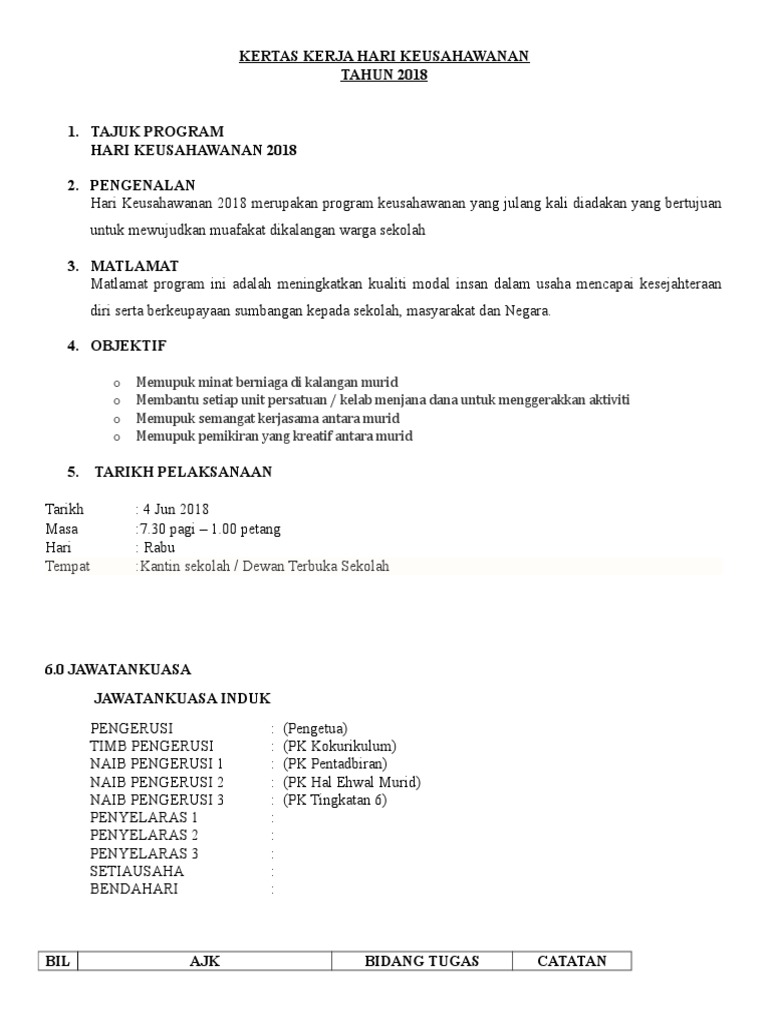 Kertas Kerja Hari Keusahawanan Pdf